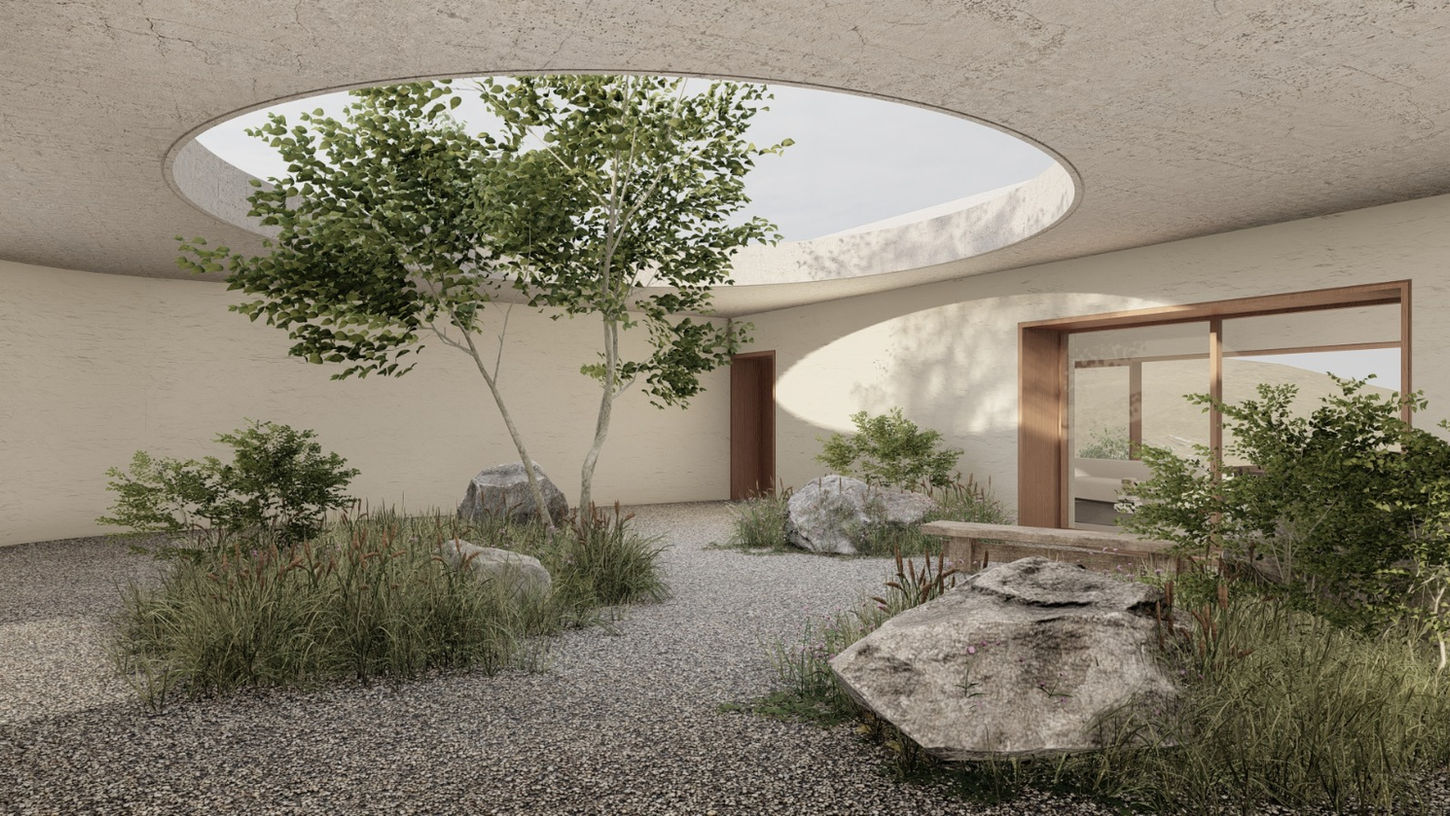El proyecto se organiza a partir de un patio central irregular, abierto al cielo, que actúa como articulador de la vida interior. Este vacío conecta visual y emocionalmente al habitante con la naturaleza, llevando luz, aire y vegetación al corazón de la casa.