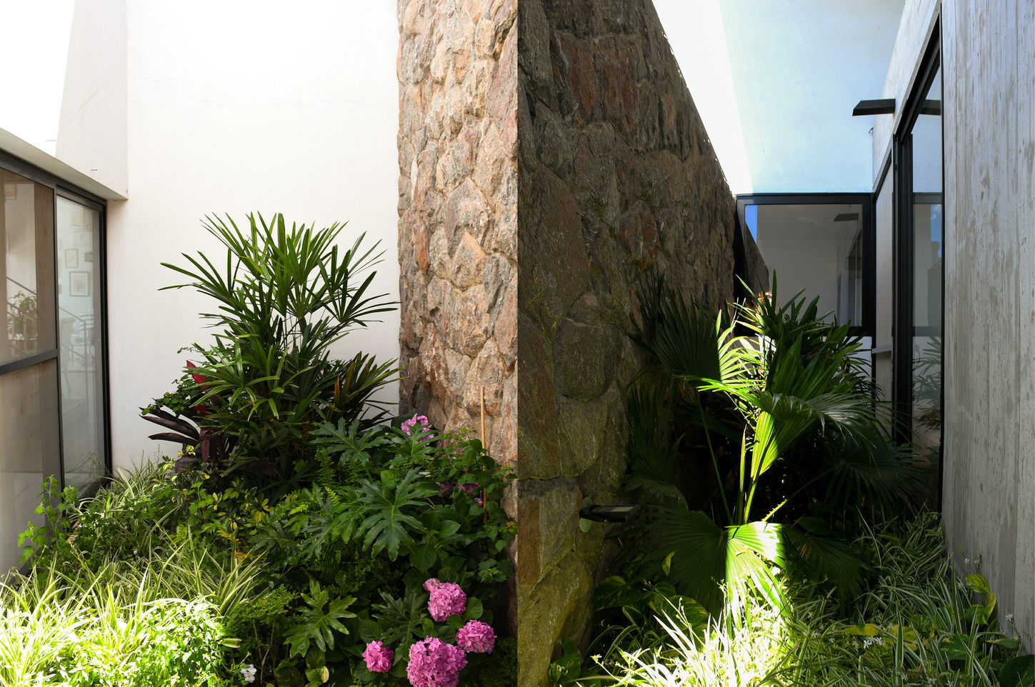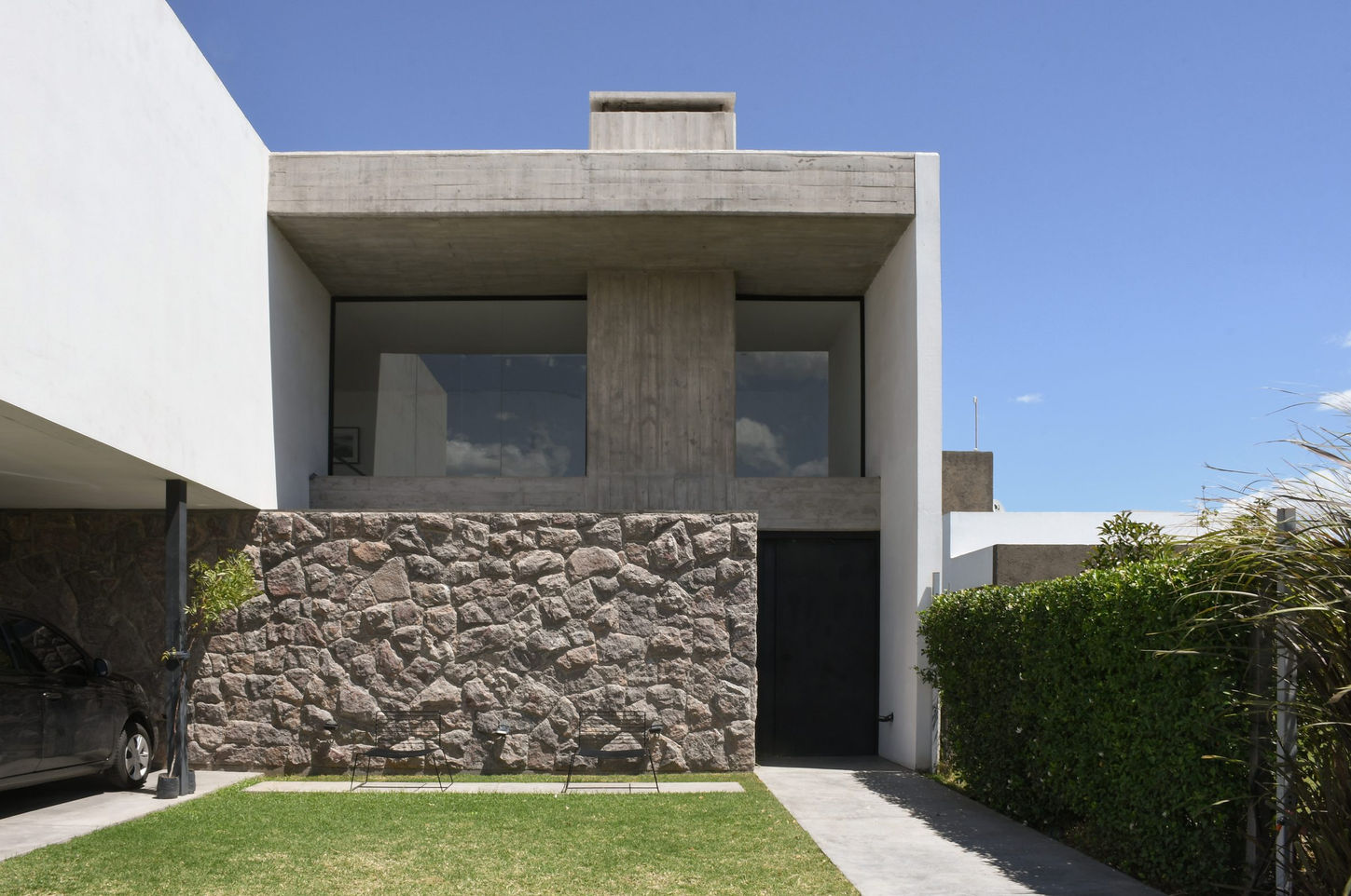 La casa se muestra cerrada hacia la calle, buscando privacidad y resguardo, mientras que hacia el jardín se abre con generosidad, extendiendo la vida interior hacia el exterior.